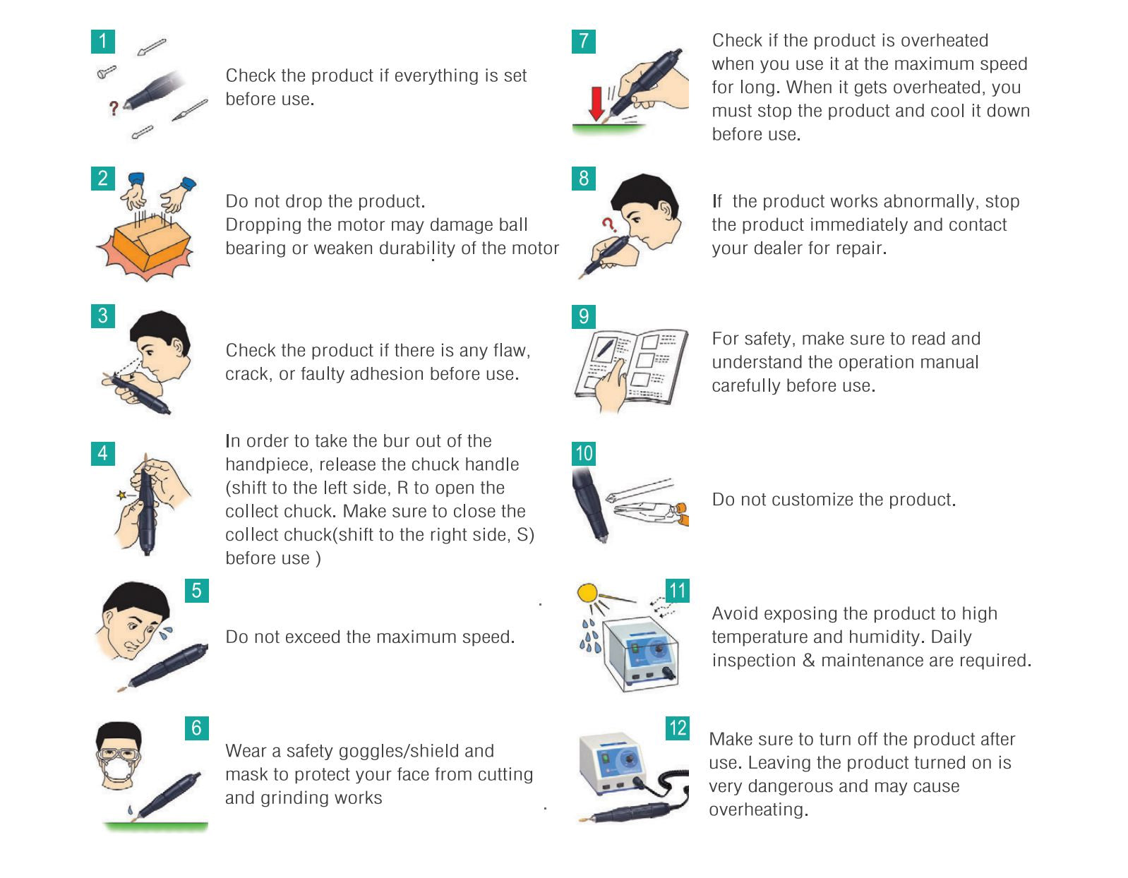 The drill also comes with a Reverse switch, an automatic energy-saving function, a pause function, a handpiece and a handpiece holder.