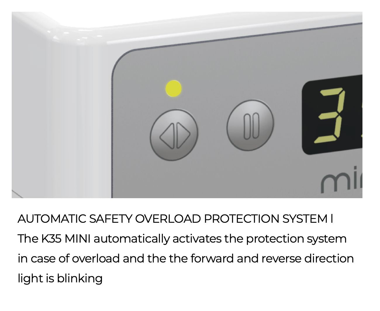 !To change the speed mode to 35,000 RPM on your K35-mini, press and hold both the "Forward/Reverse Selection" and "Pause Function" buttons for 2 seconds.