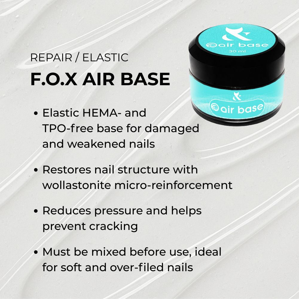 HEMA- and TPO-Free Air Base is a gel polish base that fills the damaged surface layers of the nail, restoring the structure of the nail plate. The composition of the material includes Wollastonite, an environmentally friendly component that was first used in the nail industry using the patented F.O.X technology. The molecular shape and properties of wollastonite serve as a micro-reinforcing filler. The base solves the problems of damaged and weakened nails.