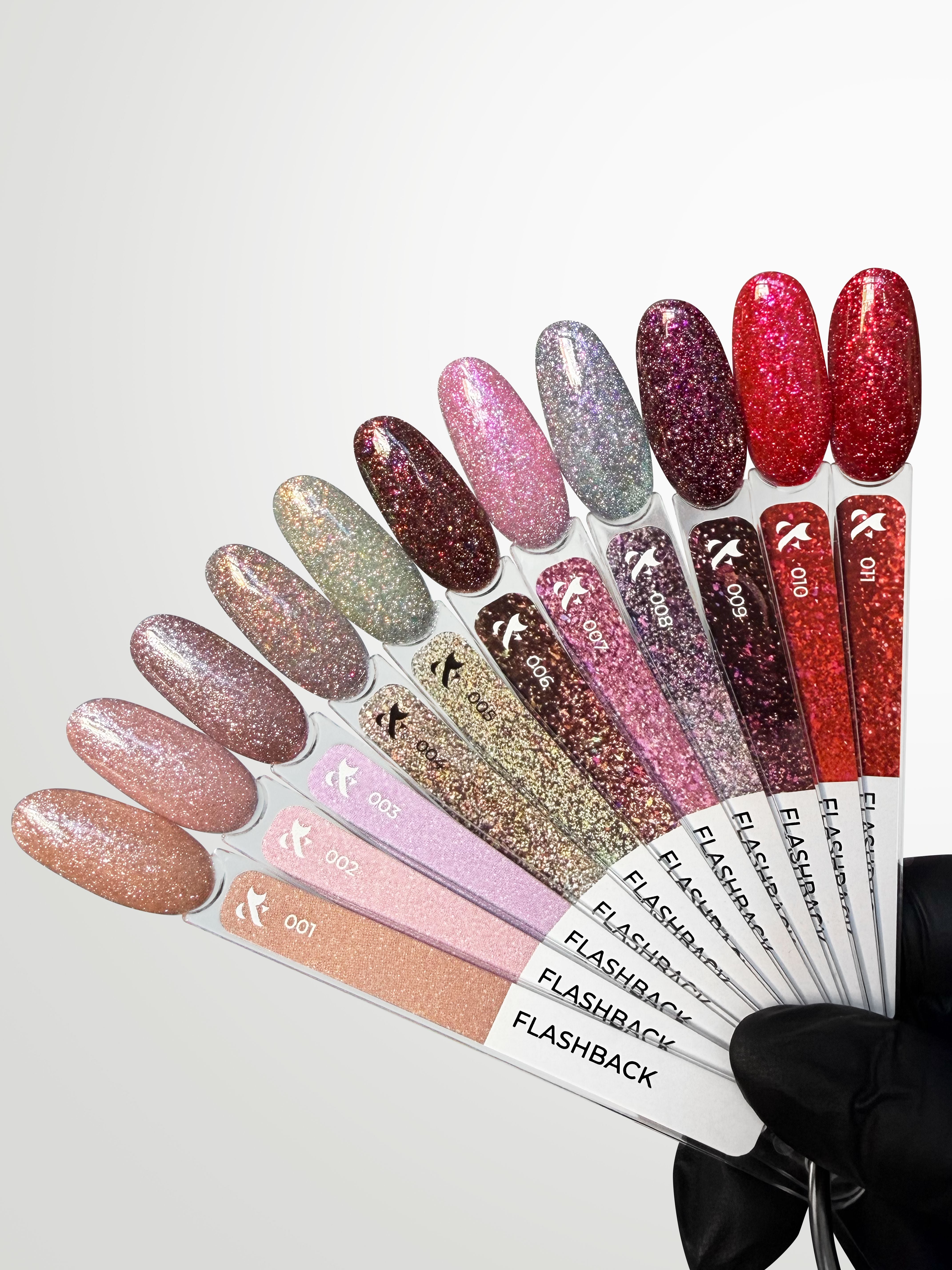 A professional light-reflecting gel polish with a striking flash effect. In daylight, the finish looks refined and elegant. Under direct or artificial light, it explodes into intense sparkle with thousands of reflective particles.