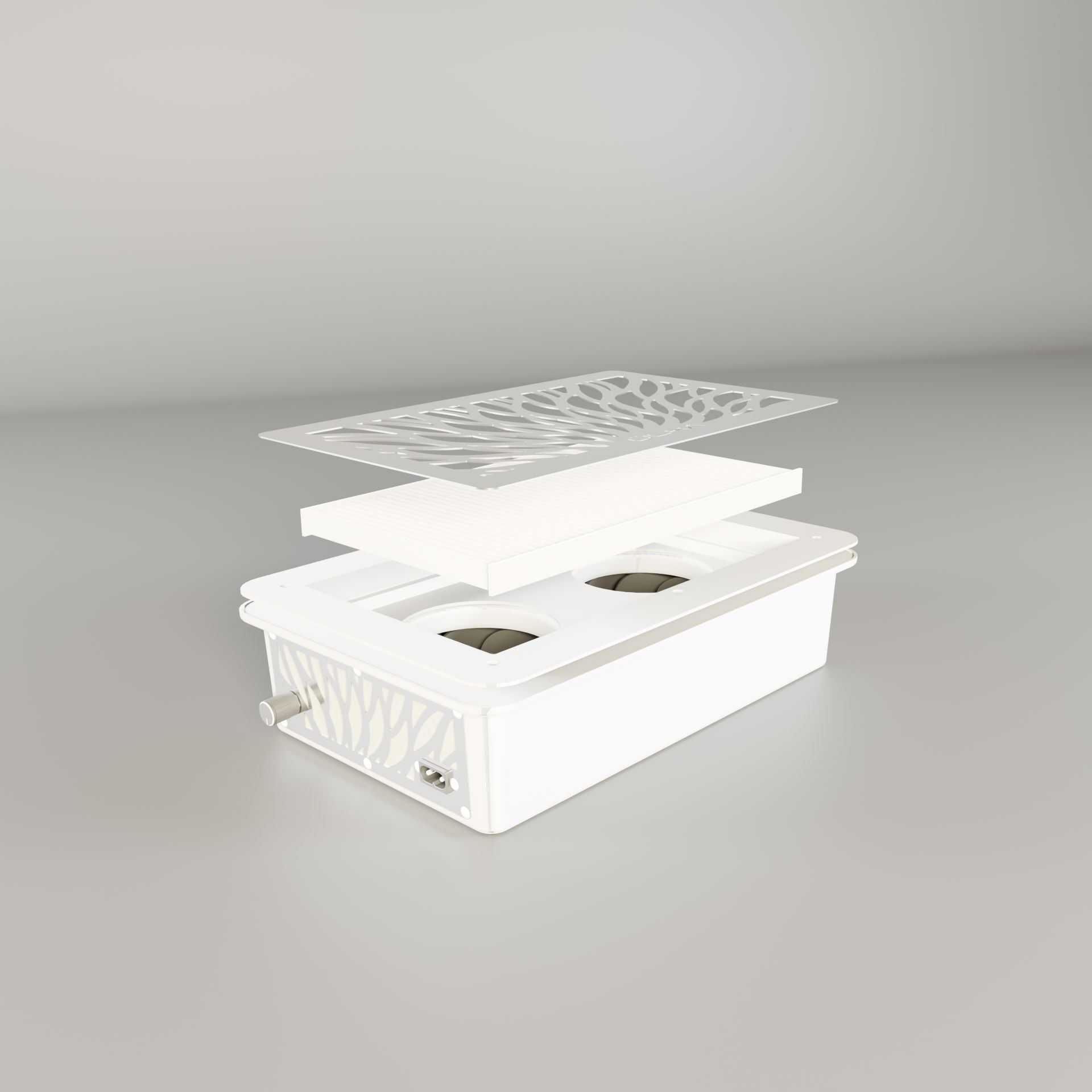 Equipped with two powerful fans and a 60W motor, the Tornado delivers consistent, balanced suction across the entire surface — not just the center. With a suction speed of 3.2 m/s, it removes nail dust quickly and efficiently, creating a clean and safe environment for both clients and nail techs.