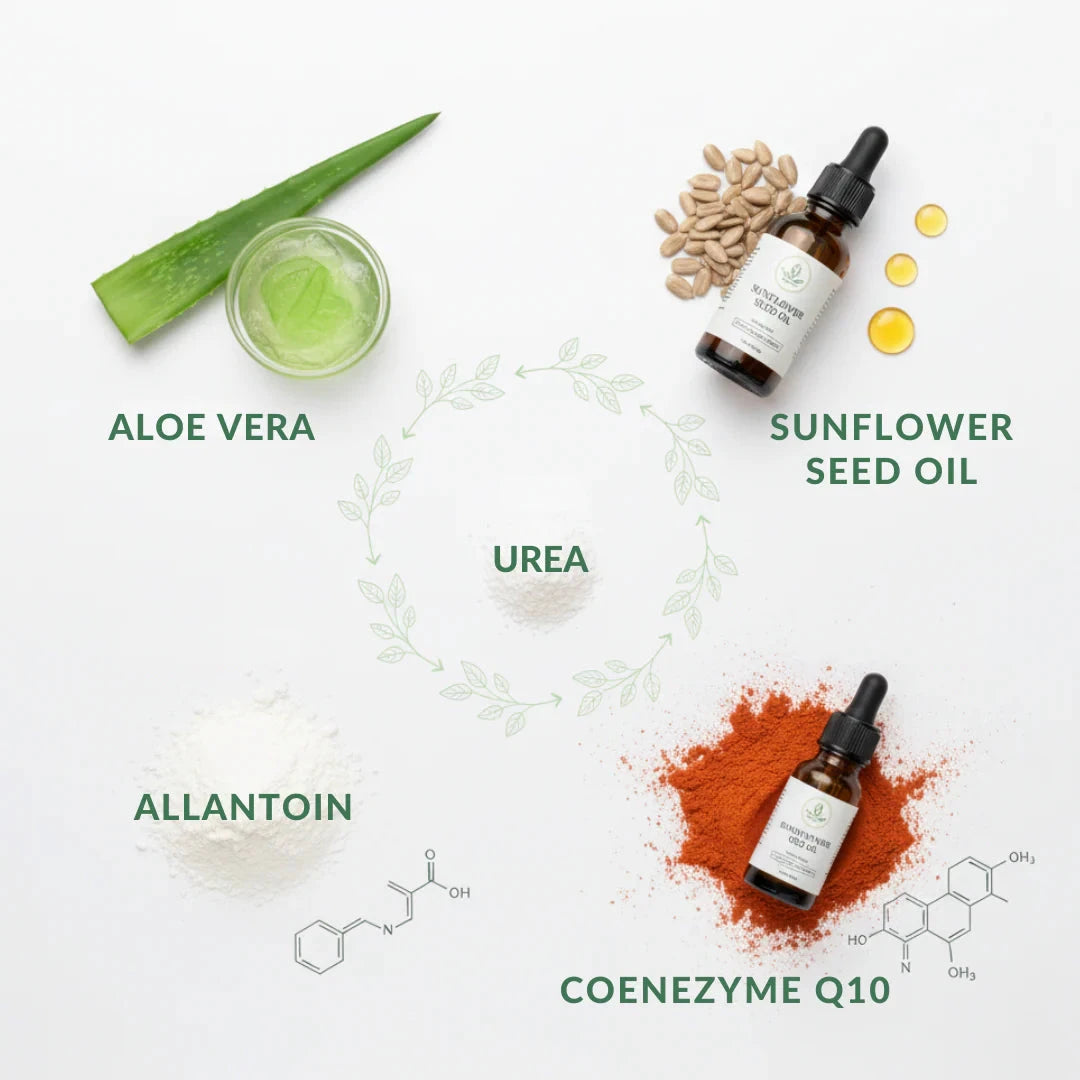 • Urea – Deep hydration that helps lock in moisture and soften dry skin