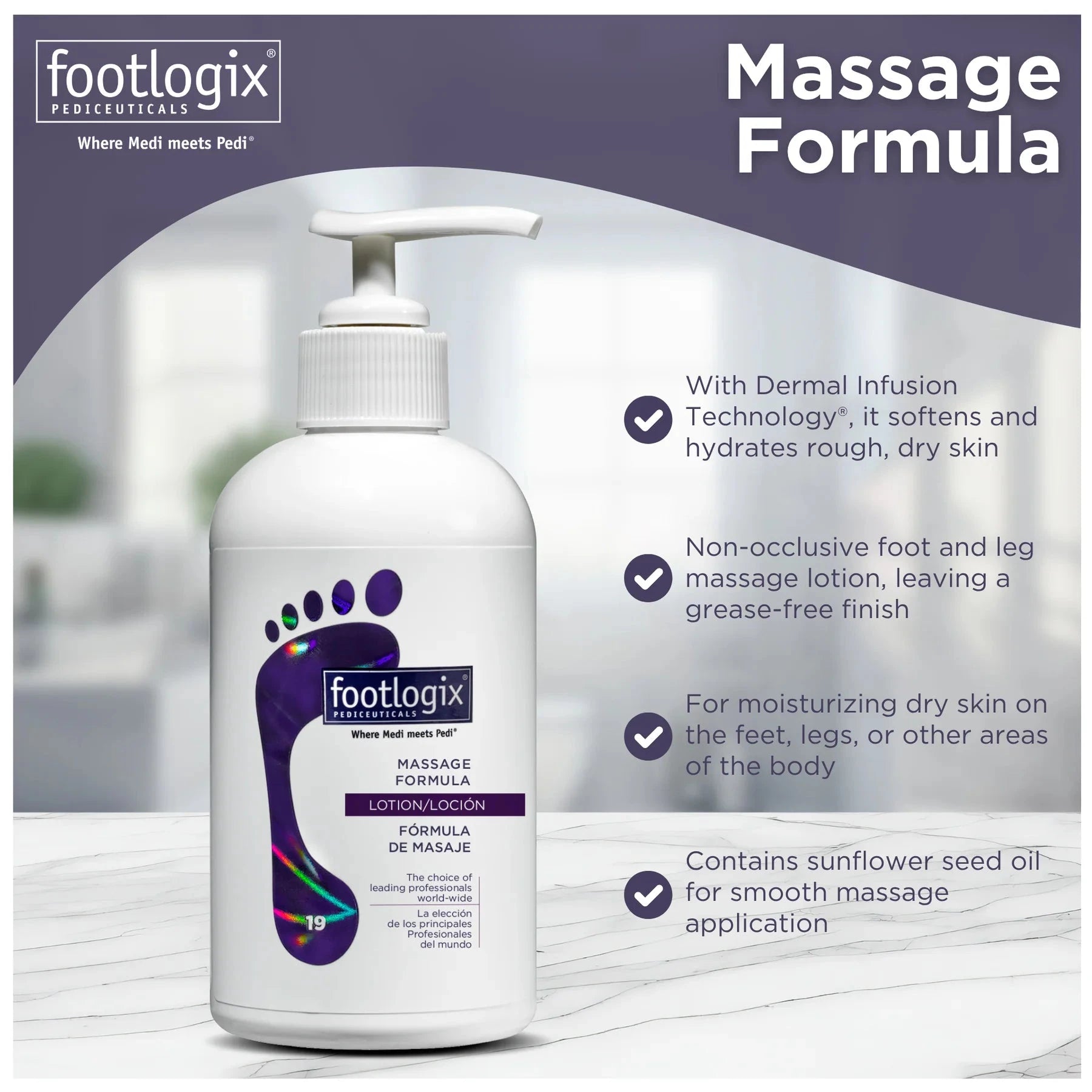 Footlogix Massage Formula is designed for controlled, professional massage with zero mess.