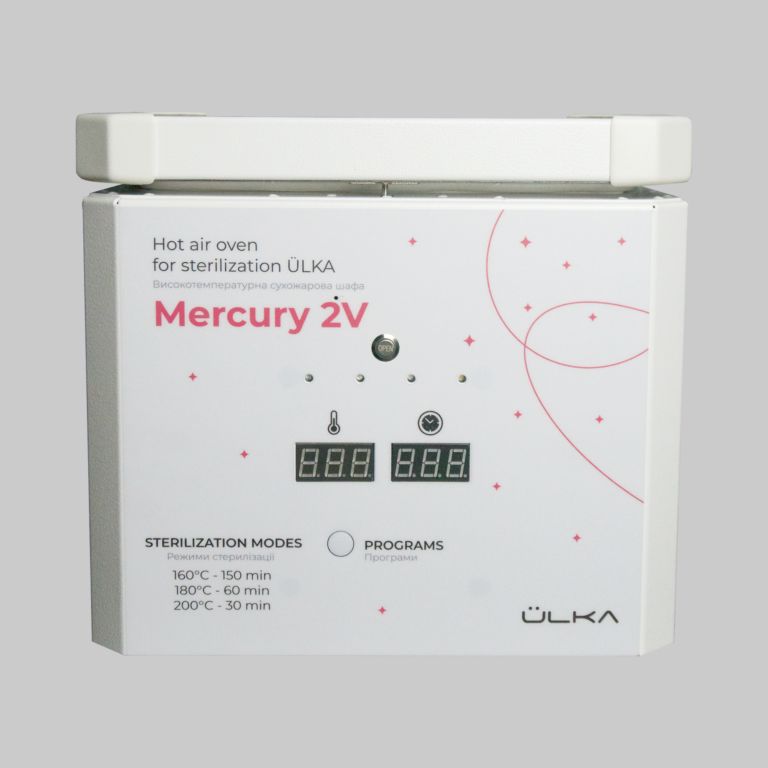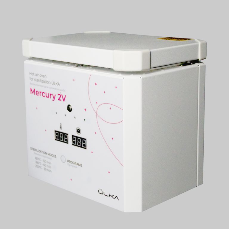 The ÜLKA Mercury 2V dry heat sterilizer provides reliable air sterilization for metal and glass tools that are rated for temperatures up to 200°C. It ensures full-surface sterilization, protects instruments from corrosion and supports continuous use by several technicians throughout the day.