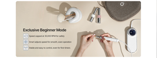 The system includes two Master-Level A5 handpieces, giving you professional flexibility whether you're sculpting, removing, refining, or doing detailed cuticle prep. An exclusive beginner mode adds extra safety and consistency for new techs or delicate work.