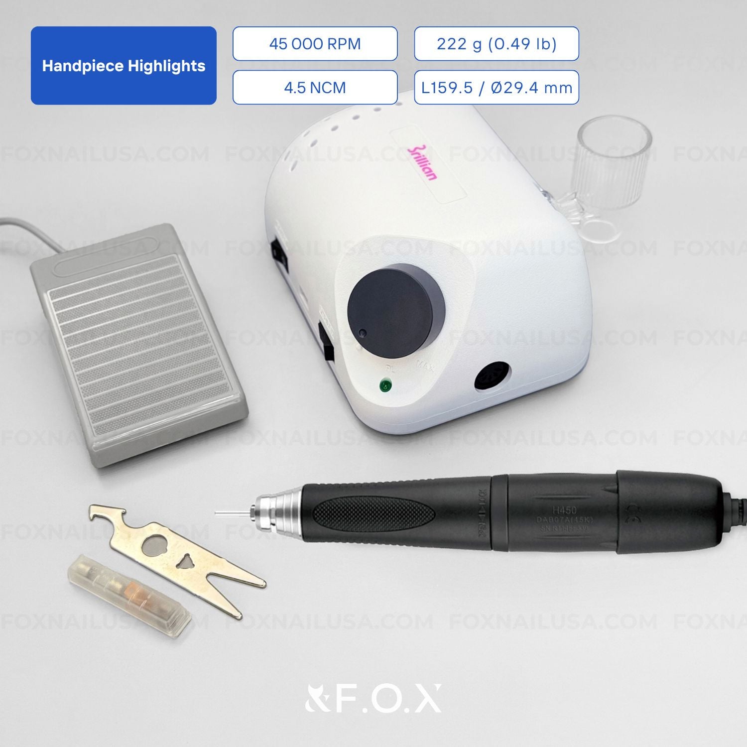 The Saeshin BRILLIAN B210/H450 Nail Drill Set is the ultimate tool for nail professionals. With 0–45,000 RPM, 4.5 Ncm torque, and a vibration-free handpiece, this drill delivers precision and power for perfect manicures and pedicures.