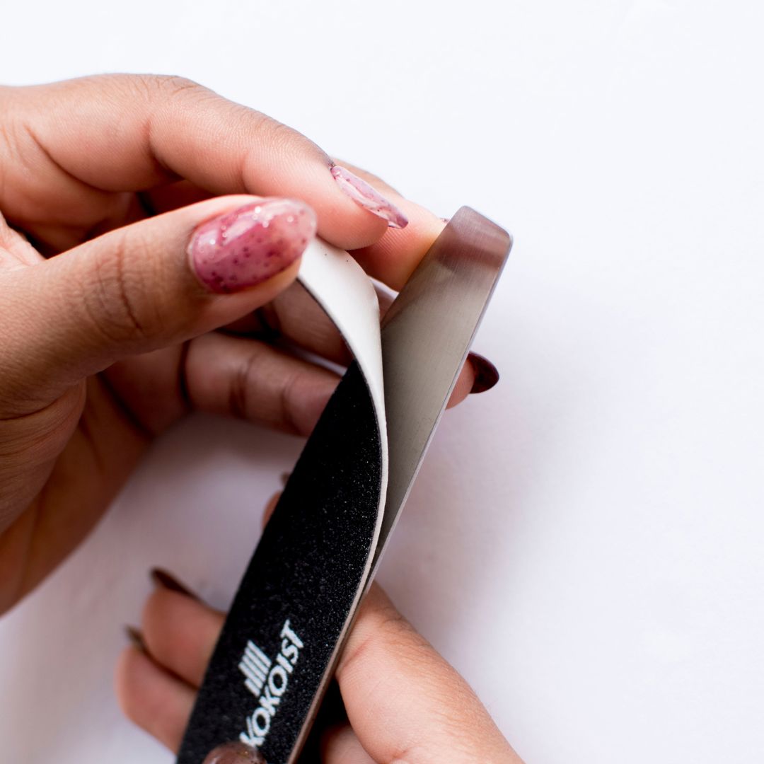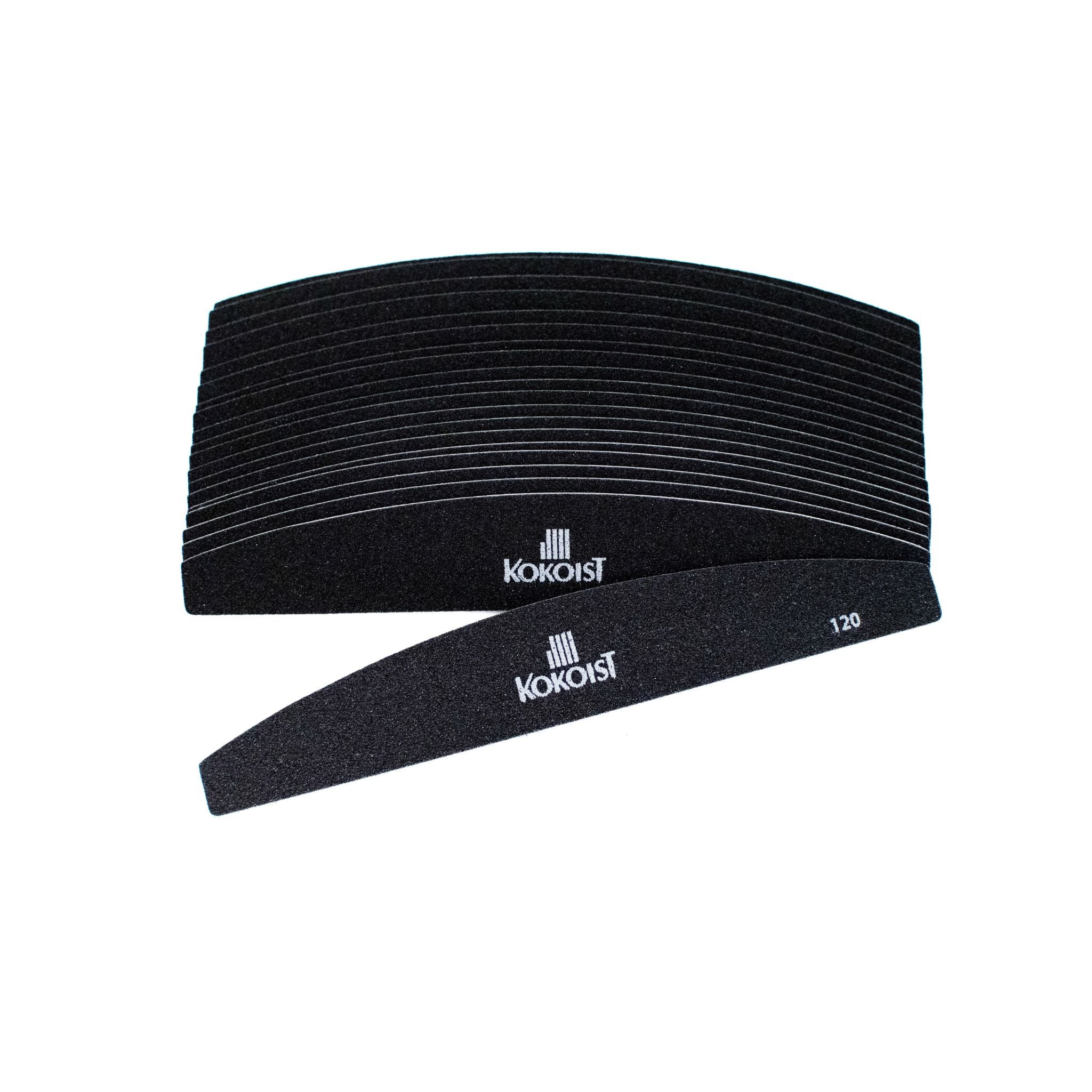 KOKOIST Replaceable Files features a stainless steel metal core with replaceable files. The Black Half Moon File can be used to file and shape the gel. #120 grit for fast removal.