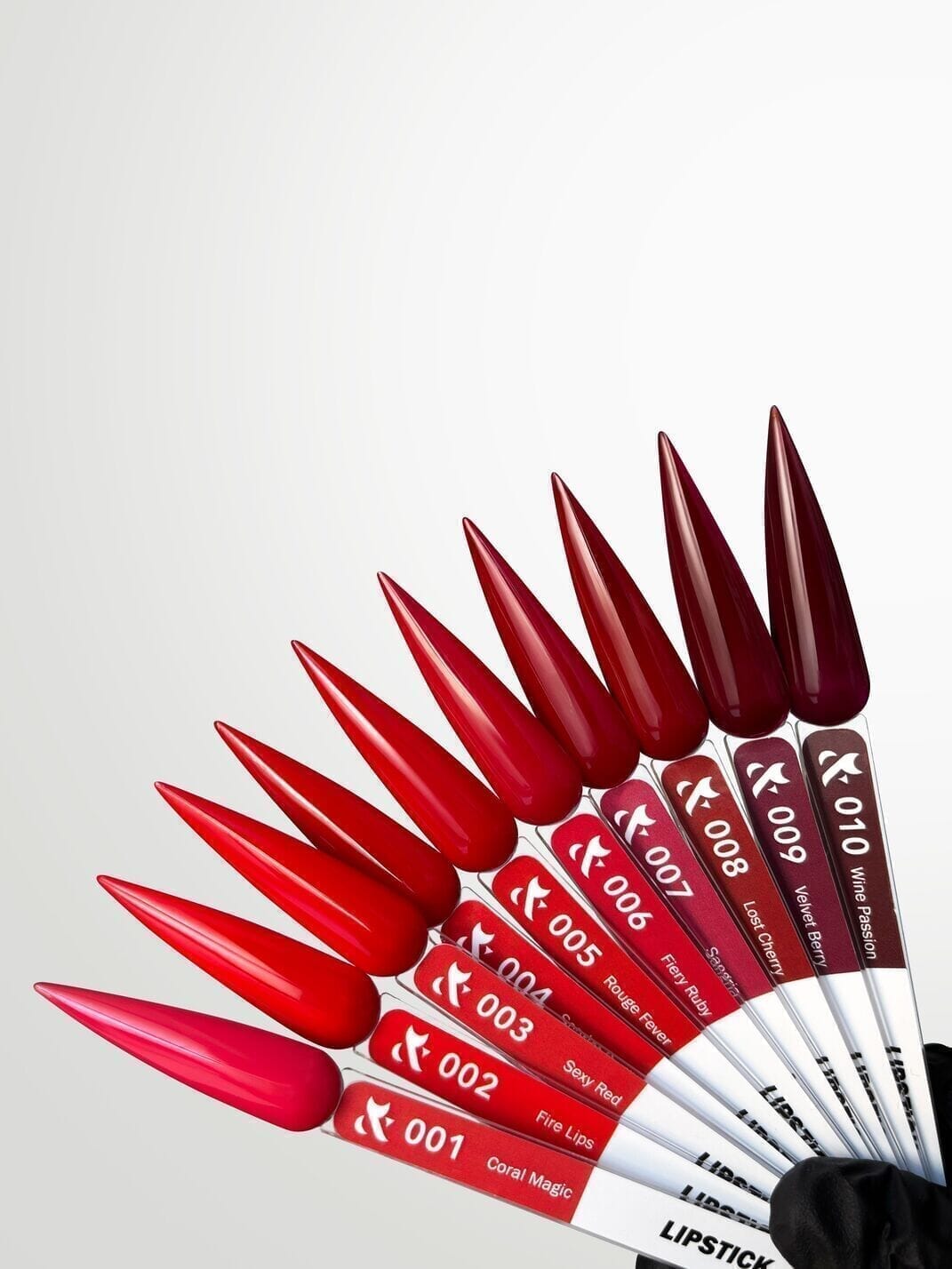 Experience the perfect blend of passion, elegance, and strength with the F.O.X Lipstick Collection. This gel polish line redefines the classic red, offering ten unique shades that exude confidence and sophistication. With a highly pigmented formula and flawless consistency, each color delivers even coverage, intense vibrancy, and long-lasting wear.