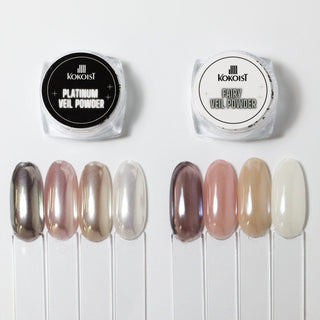 The Platinum Veil Powder has more of an opaque white sheen to it, while the Fairy Veil Powder is a more clear glassy effect.