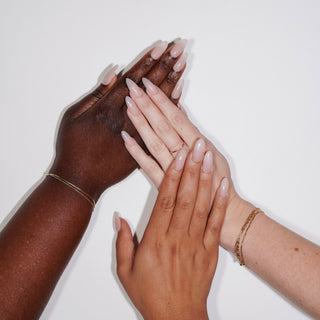 2. BASE: Apply the Nail Thoughts Tinted Base Gel to the natural nail and cure using an UV and/or LED lamp. OPTIONAL: Apply two layers of the base coat, adding an apex while curing in between for extra durability.